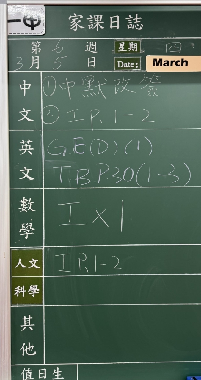 班別家課