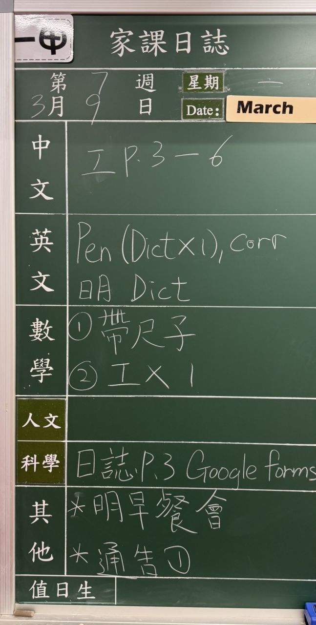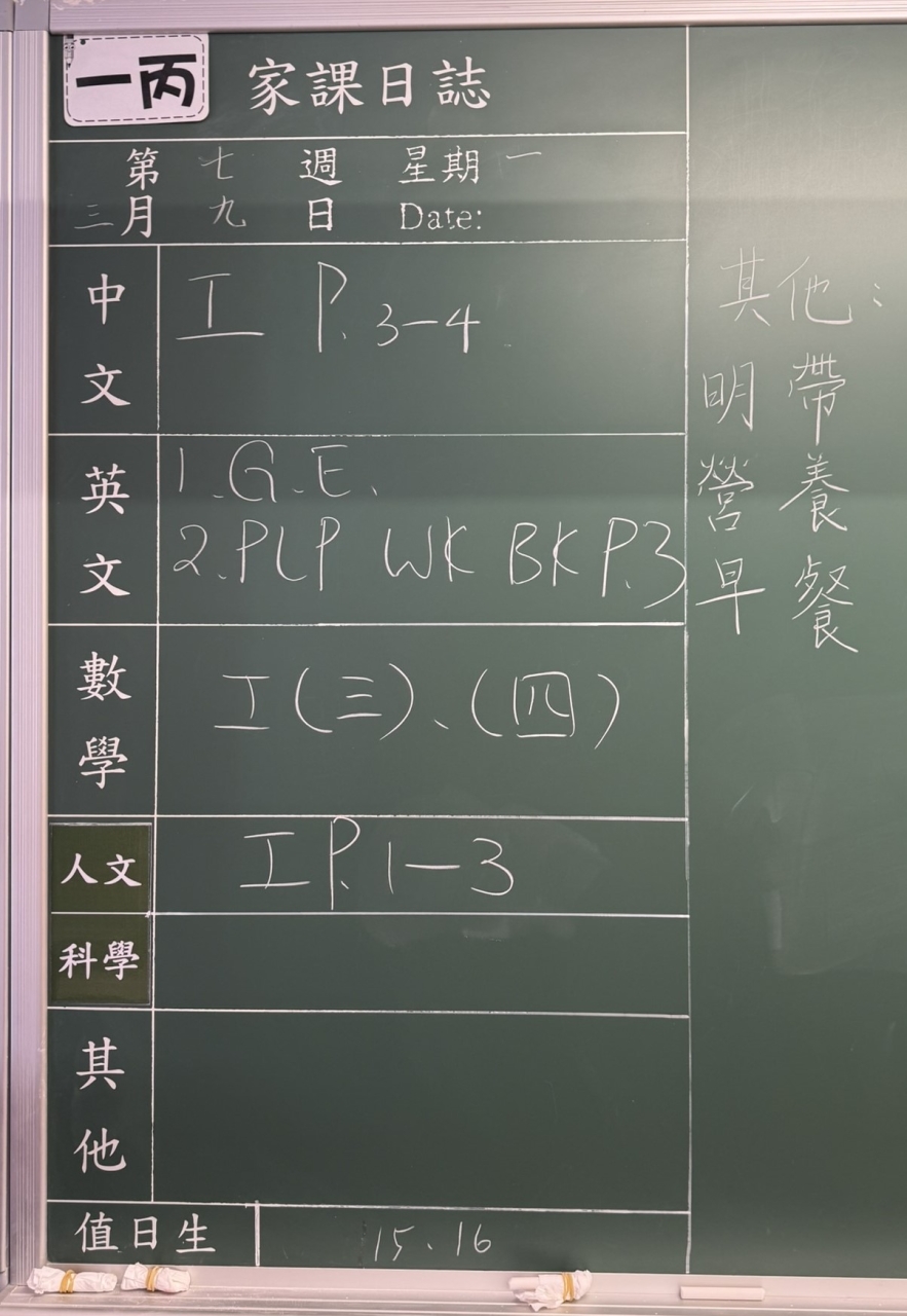 班別家課