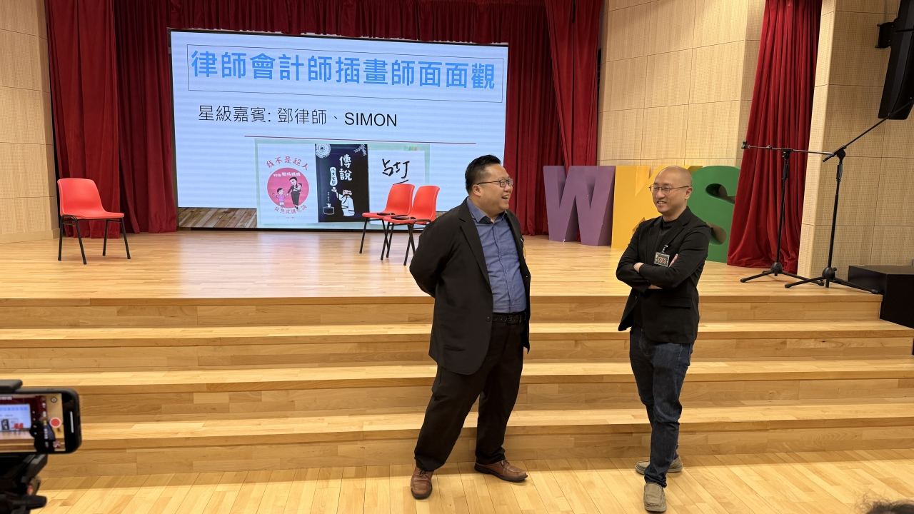 鄧律師及 SIMON 哥哥再度光臨我校,為莘莘學子帶來一場精彩難忘的講座。兩位嘉賓分享自身成長經歷,勉勵同學對自己有所要求,用心做好每一件事;勇於嘗試、不怕失敗,始終保持正面積極的心態;同時要懂得珍惜所擁有的一切,時刻懷抱一顆品德高尚的心。